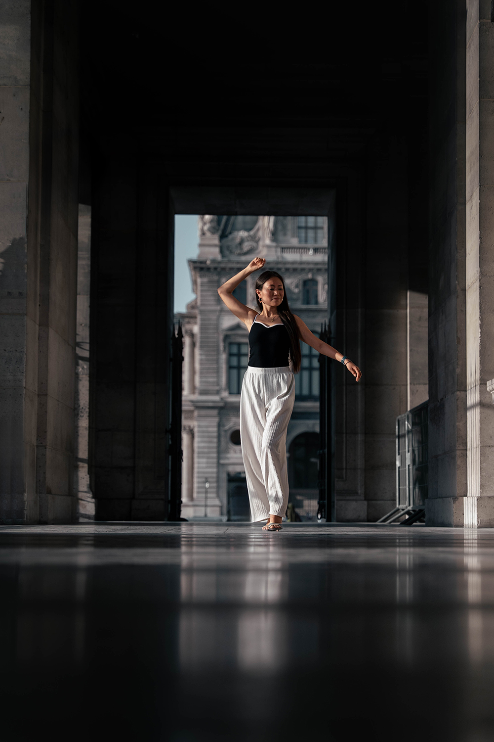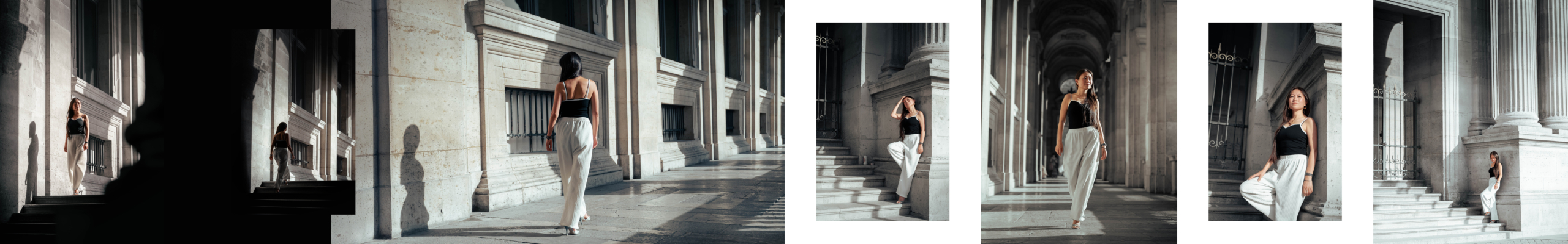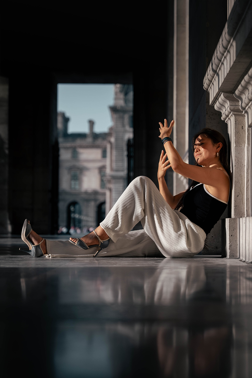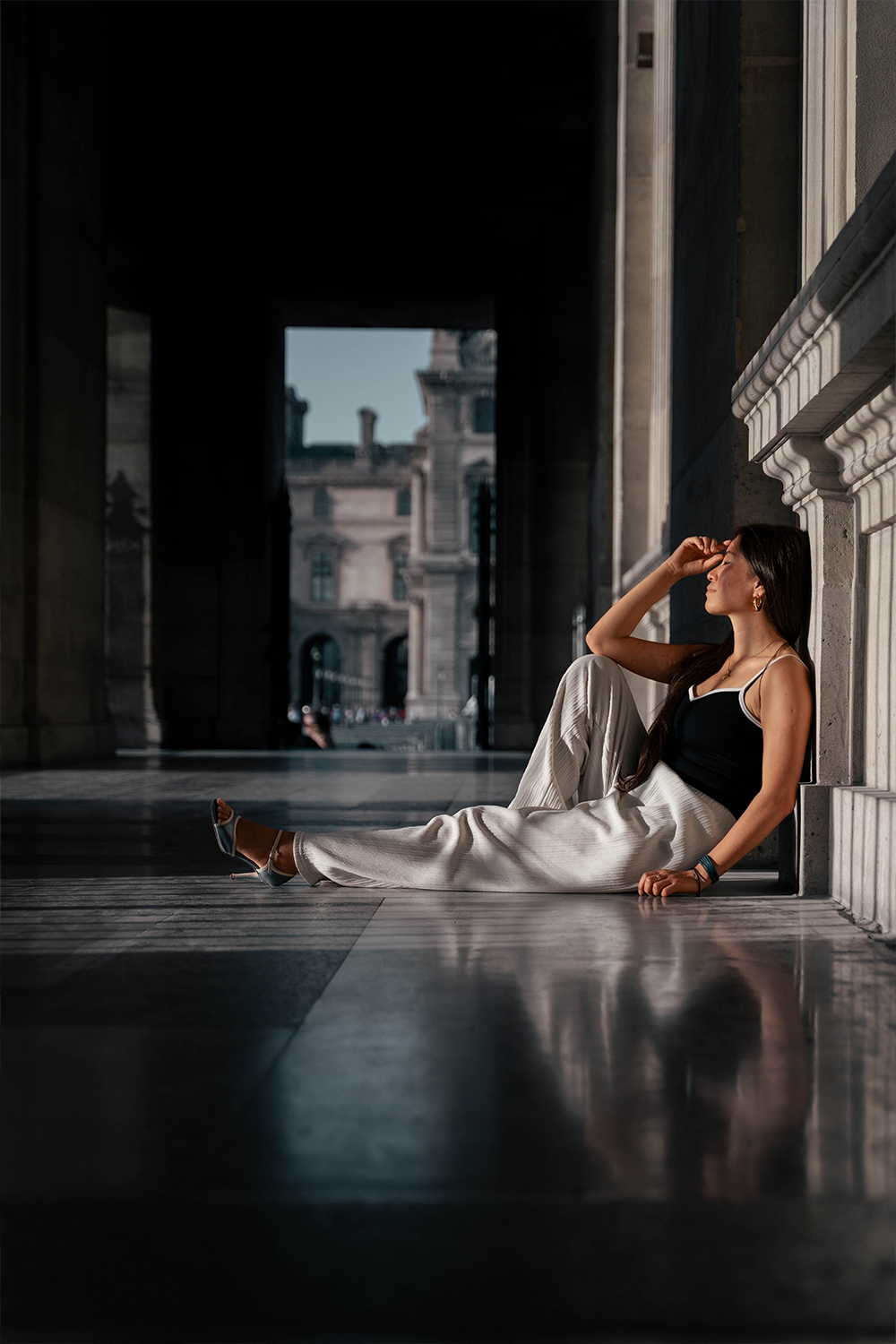 An editorial journey through the Louvre’s iconic couloirs—where light, shadows, and architecture frame every pose. Every shot tells a story of elegance, culture, and timeless style.