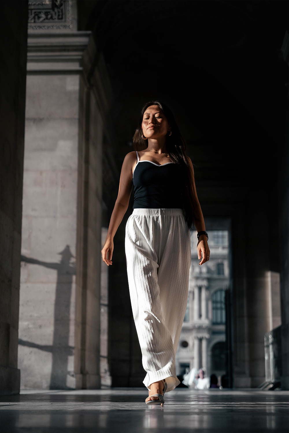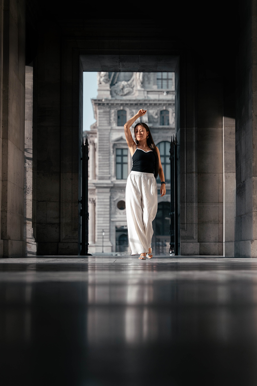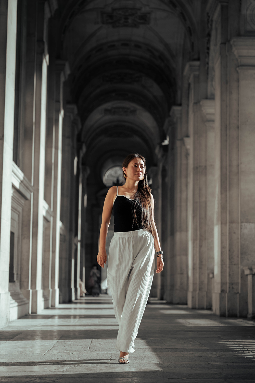 An editorial journey through the Louvre’s iconic couloirs—where light, shadows, and architecture frame every pose. Every shot tells a story of elegance, culture, and timeless style.