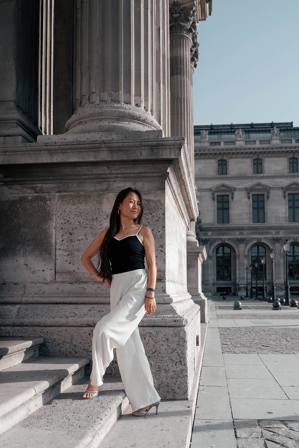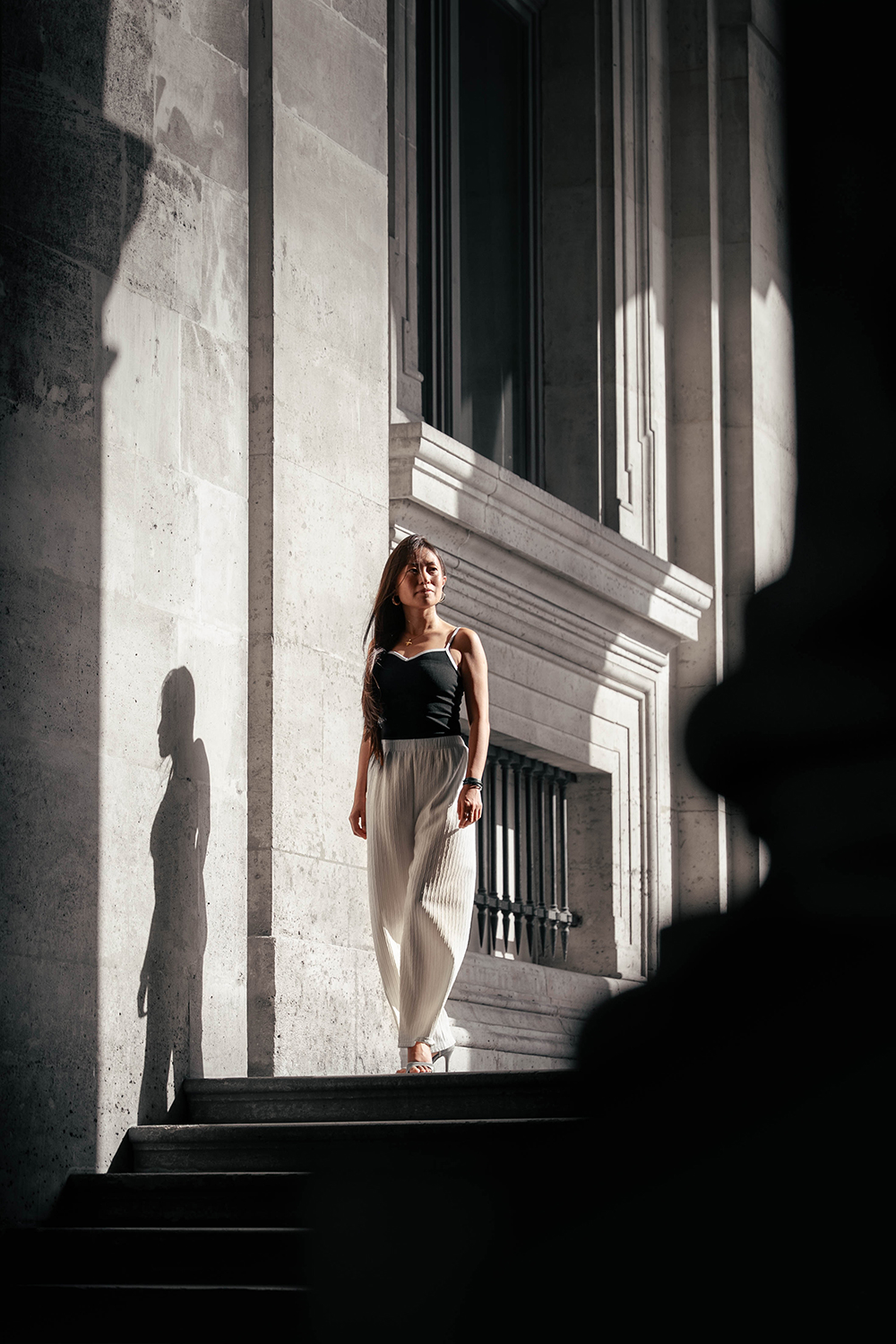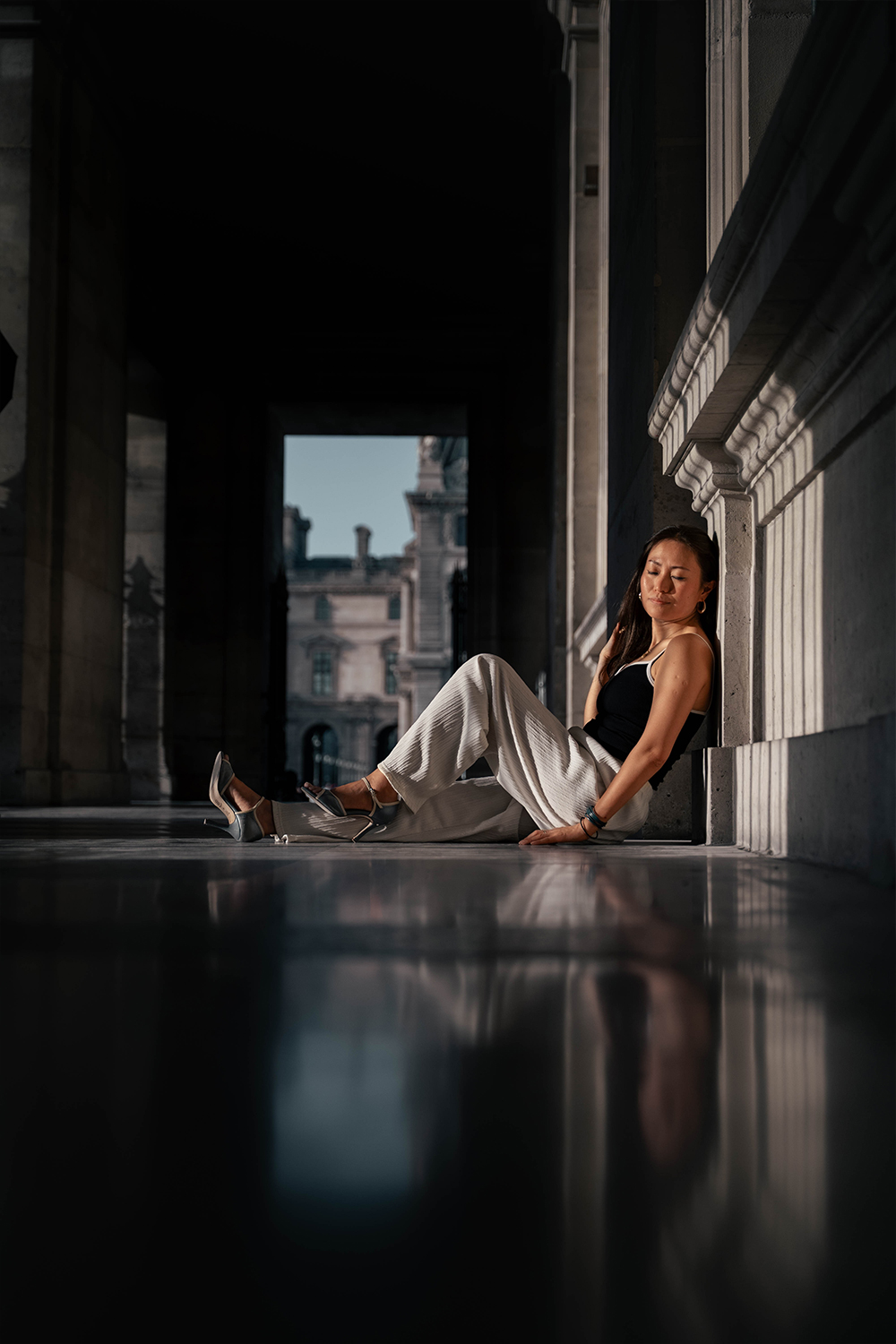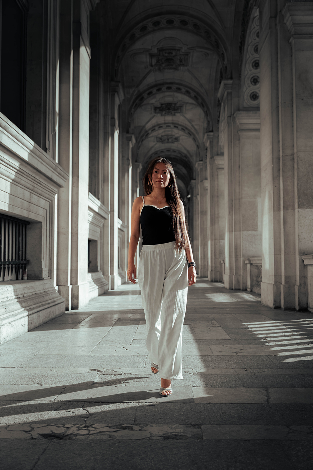 An editorial journey through the Louvre’s iconic couloirs—where light, shadows, and architecture frame every pose. Every shot tells a story of elegance, culture, and timeless style.