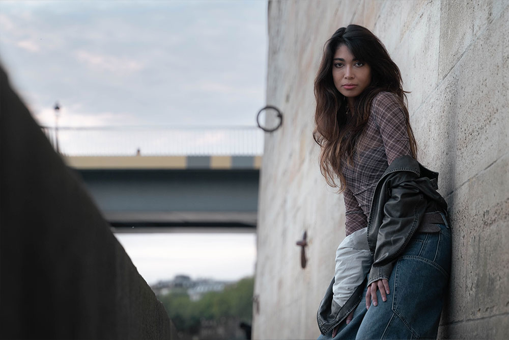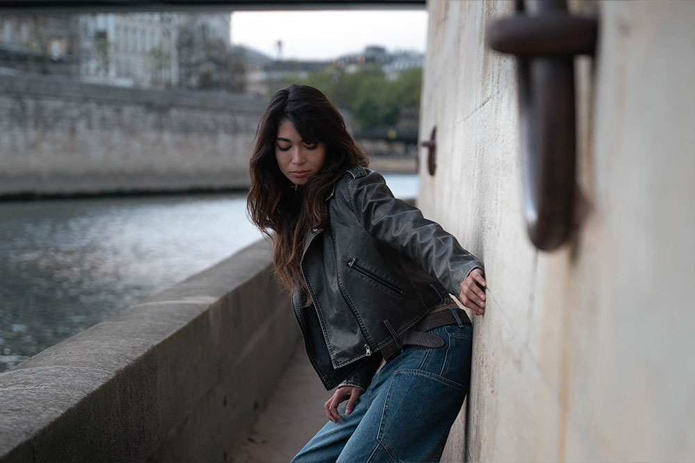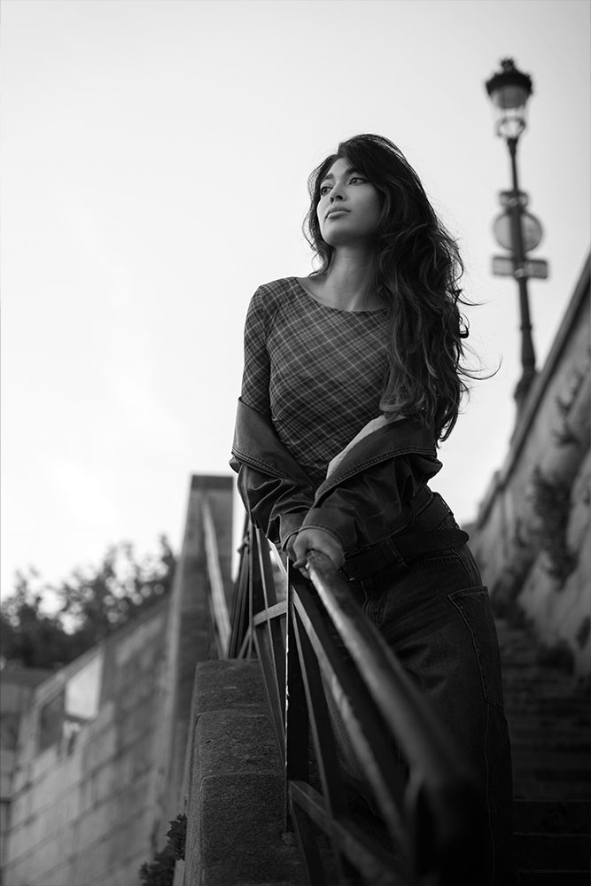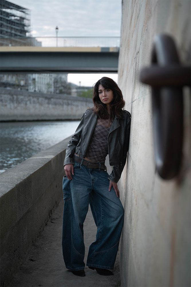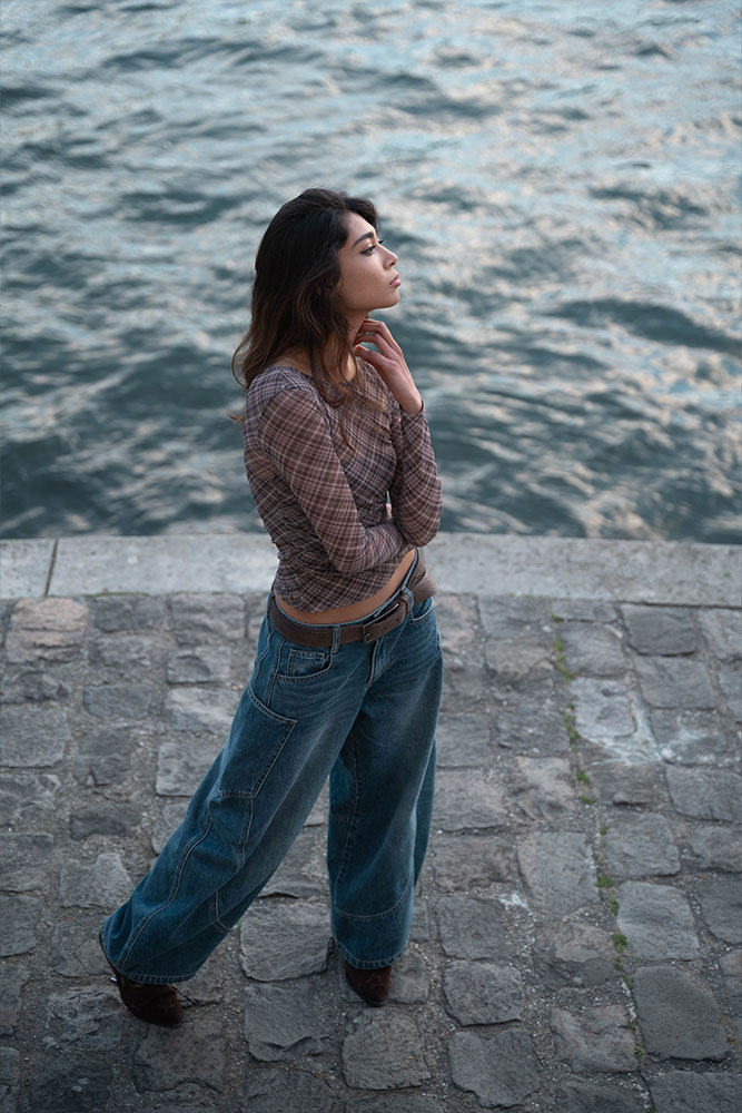 Zaha moved effortlessly between strength and softness, creating silhouettes against the fading light and intimate close-ups bathed in gold. The quais de Seine offered a perfect contrast: raw stone textures, fluid water, and that unmistakable Parisian atmosphere.
